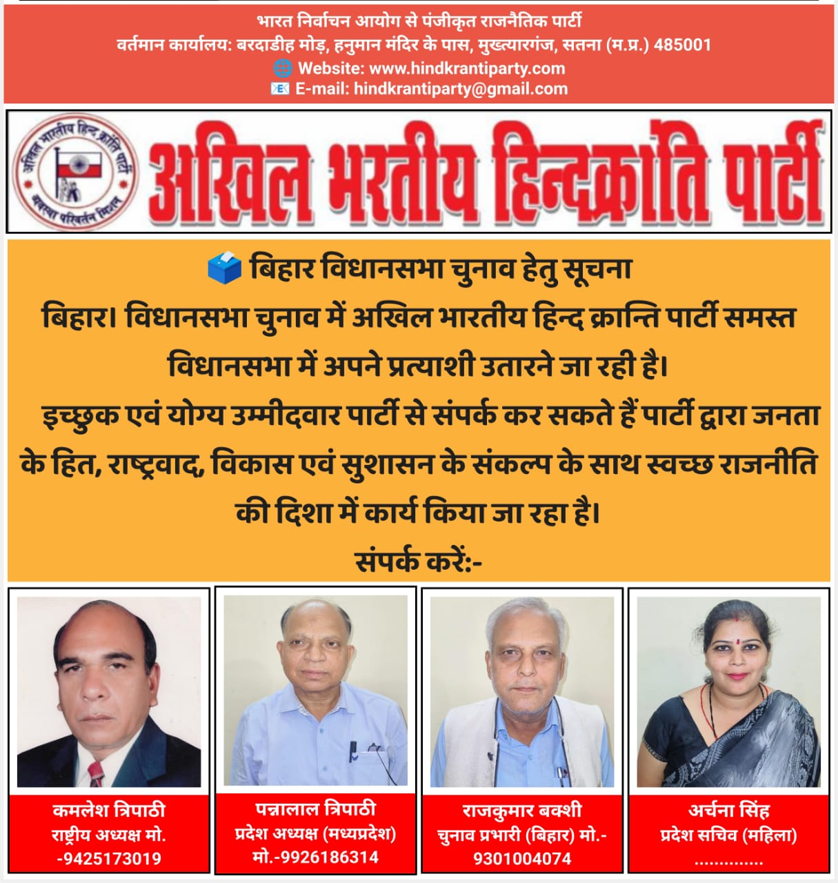 📧 E-mail: hindkrantiparty@gmail.com